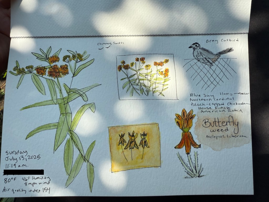 You can feel appreciation and fulfillment. When you see that bird enjoying the fresh water in the bird bath that you provided for them on a hot day. When you see the Ruby-throated Hummingbird enjoying the Butterfly Weed that you planted years ago. That’s love in action.